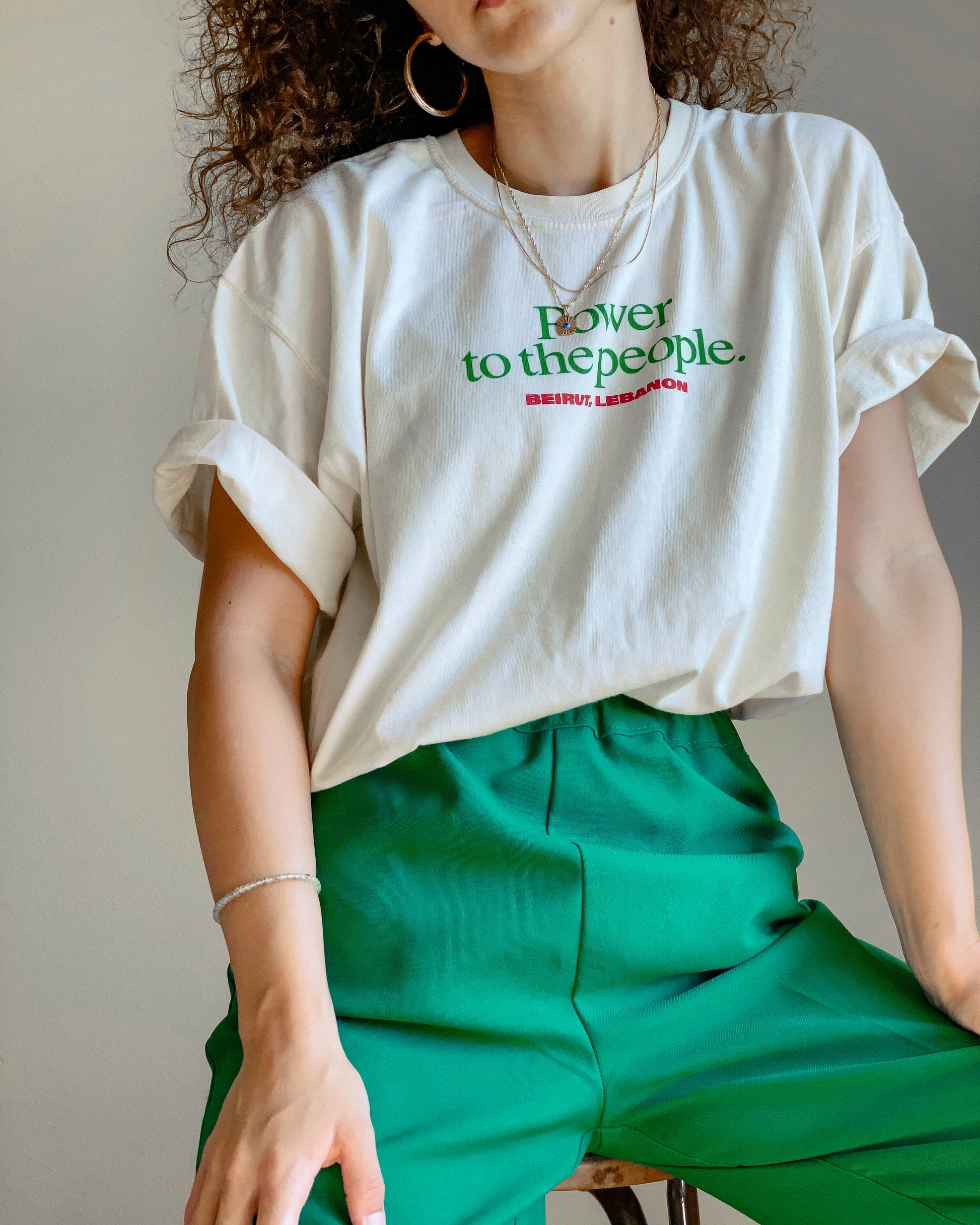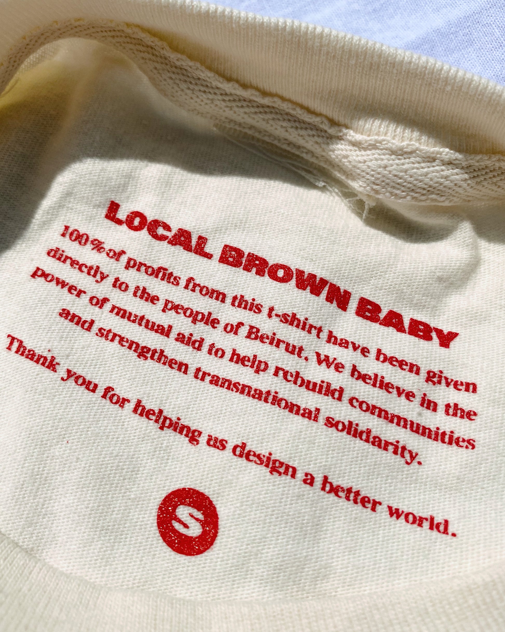 100% of profits from this t-shirt go directly to the people of Beirut, Lebanon. Local brown babe Jude Chehab is working with local organizations on the ground to help rebuild communities through direct aid. She is visiting families around the city to provide them with the resources needed to repair their homes, small businesses, buy food, sanitation supplies, and much more. Follow her daily work here.